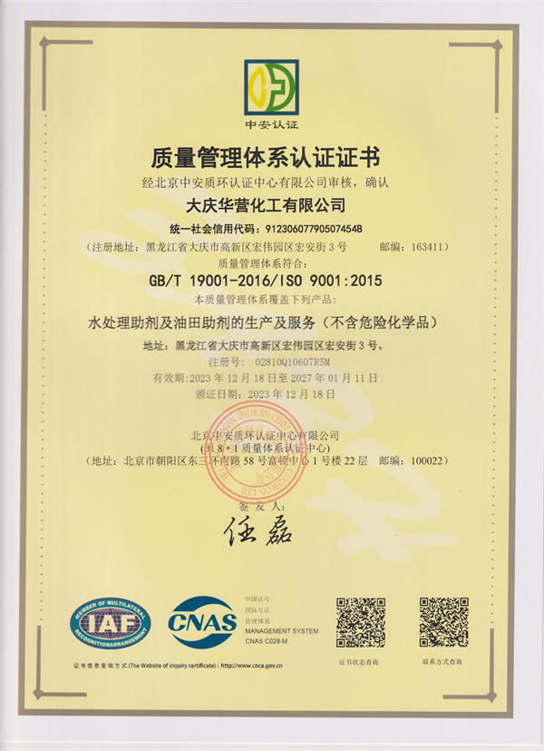 榮譽資質(zhì) 質(zhì)量管理體系認(rèn)證證書