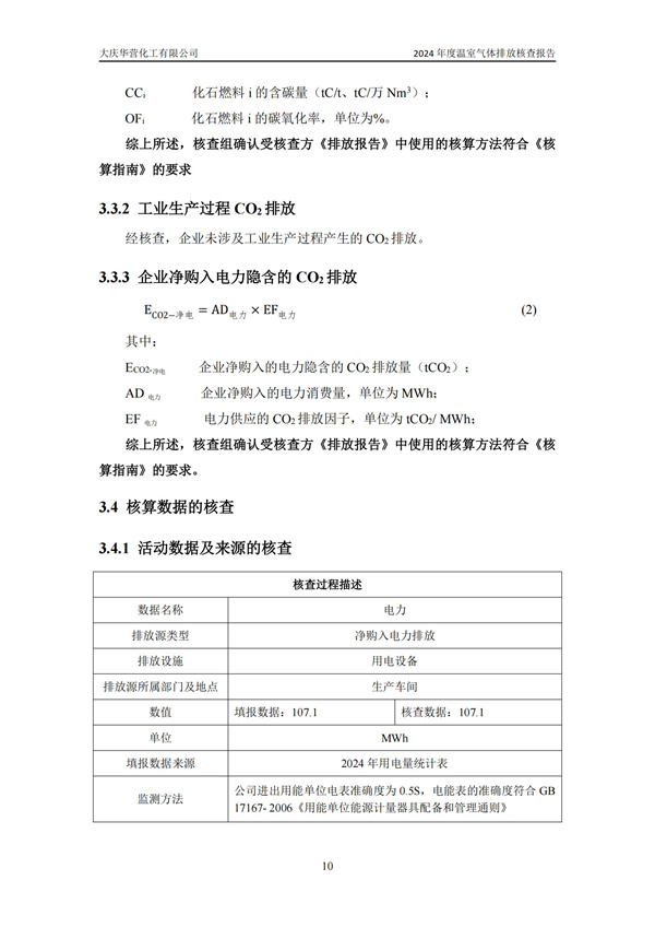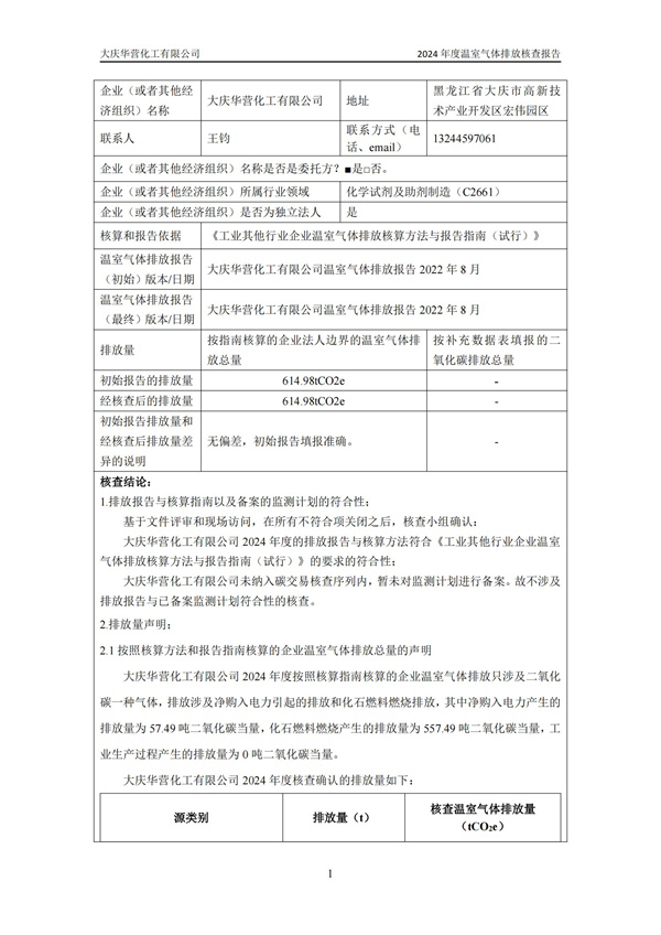 2024年度 溫室氣體排放核查報告_報告展示_大慶華營(yíng)化工有限公司